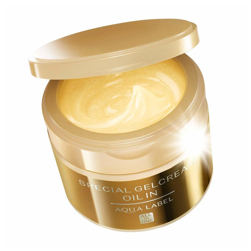 SHISEIDO Aqualabel All in One Special Gel Cream Oil In has the functions of a watery lotion, beauty serum, moisturiser milk, face cream and mask in one, and it can be applied immediately on freshly cleansed skin as a one step care. It has a concentrated formula featuring “Baby Amino Acid” (glutamic acid), Collagen HYGL, (Soluble collagen, hydroxproline, and glycerin), and Double Hyaluronic Acid ti deeply moisturixe and improve, skins firmness, An encapsulated blend of organic jojoba oil, organic seasame oil, and squalane deeply nourishes and restores dry, ageing skins youthful glow. Result: Skin looks pumpled up, radiant, glowing. Light Rose Fragrance